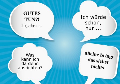 Aber so eine ganz allgemeine Aufforderung zur guten Tat bringt einen noch lange nicht dazu, selber Gutes zu tun. Schließlich sind da ja noch so viele andere. Die könnten das sicherlich viel besser als ich. „Da ist sicherlich einer, der mehr weiß, mehr kann, mehr hat... - Ach ja, und gerade ist es auch zeitlich ganz ungünstig für mich...“