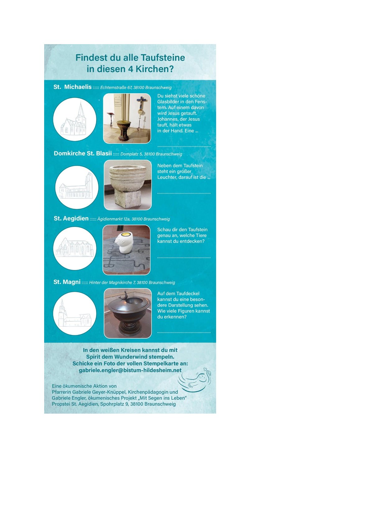 Weitere Informationen erhalten Sie unter: https://www.dekanat-braunschweig.de/nachrichten/artikel/oekumenische-taufsteintour-2025/